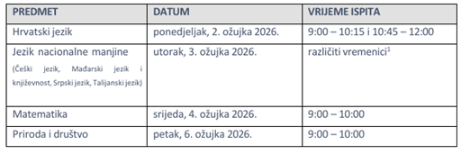 Raspored nacionalnih ispita za učenike četvrtog razreda: