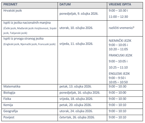 Raspored Nacionalnih ispita za 2025./2026. godinu