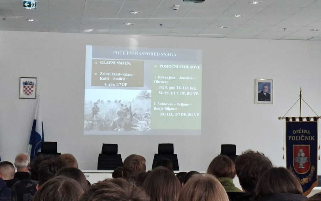 Početak 1993.godine ostao je zapamćen u mislima i srcima stanovnika novigradske općine. Bili su to dani borbe, zajedništva, nade u bolju budućnost. VRO Maslenica oslobodila je veći dio zadarskog zaleđa, Masleničko ždrilo i zrakoplovnu luku Zemunik. Posebnu ulogu u izviđačkoj pripremi i provođenju ove vojne operacije imala je 7.domobranska pukovnija Zadar. Njezin ratni zapovjednik , umirovljeni brigadir Danijel Kotlar, predstavio je osmišljavanje, tijek i posljedice Operacije Maslenica učenicima osnovnih škola s područja gdje se ova vojnoredarstvena akcija odvijala. Tako su i osmaši OŠ Novigrad, zajedno sa svojom razrednicom, sudjelovali u proširenom satu povijesti u Centru za razvoj i edukaciju Poličnik. Tom prilikom mogli su vidjeti i dokumentarni film o Akciji Maslenica te fotografije poginulih ratnika. Preživjeli sudionici ovog događaja neiscrpan su izvor uspomena i iskustava koje trebamo poštivati i prenositi novim generacijama.